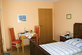 Unser Haus bietet ihnen eine sehr ruhige Lage in der Nähe der Reben, ein schönes helles Zimmer mit Doppelbett.